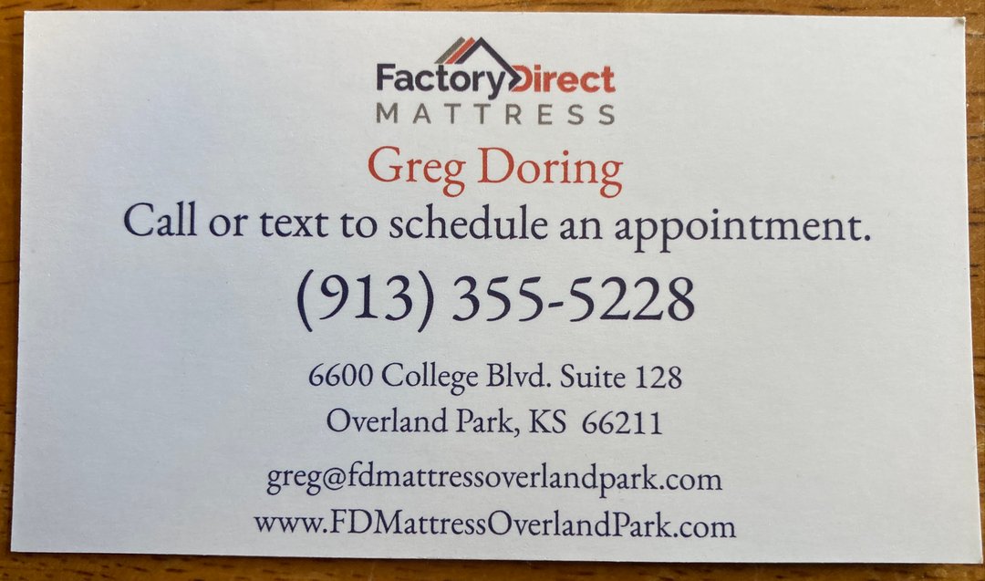 Voted Best Furniture/Mattress Store by the Johnson County Post & Highest Rated Mattress Store in Kansas City according to Google! Welcome to our family owned, by-appointment-only bed store. You get the store to yourself to take your time and find your perfect mattress. We're a one stop shop for the top online brands to try before you buy. We feature Nectar, Puffy, DreamCloud, Birch, Helix, Leesa, Bear & more. We always match their online sale prices! We're your local, lower price alternative to Mattress Firm or Nebraska Furniture Mart. Convenient mattress delivery available! As a family business, we prioritize honesty and integrity. Contact us now to schedule your appointment and discover the best deal on a mattress today.
